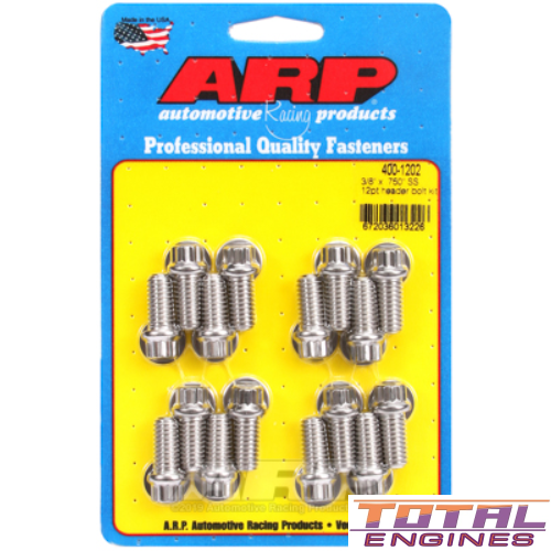 Keep your Chevrolet Big Block or Ford engine running smoothly with the ARP Header Bolt & Stud Kit. This kit, with product code 400-1202, is designed to provide a secure and reliable connection for your manifold. Each bolt has a Socket Size of 3/8 12pt and a Thread Size of 3/8", making installation quick and easy. With a UHL of 0.750", this kit includes 16 bolts to ensure a tight fit for your manifold.