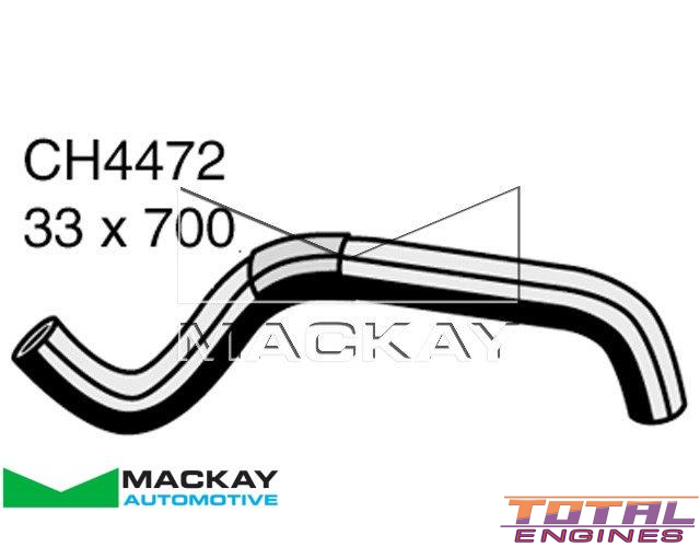 Introducing the Mackay Radiator Lower Hose, product code CH4472. This high-quality hose is a vital component in your vehicle's cooling system, ensuring optimal performance and efficient heat transfer. With a 700mm hose length, Inside Diameter 1 of 33mm, and Inside Diameter 2 of 33mm, this radiator lower hose is designed to meet the exact specifications of your vehicle, providing a secure and reliable connection between the radiator and the engine.