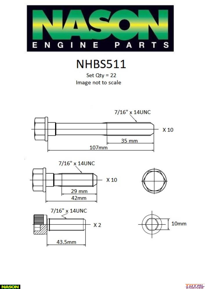 Nason Head bolt set Fits HSV Senator VT Signature 220i Sedan [09/1997 to 06/1999] (5.7L 304 Stroker V8 OHV MPFI)
